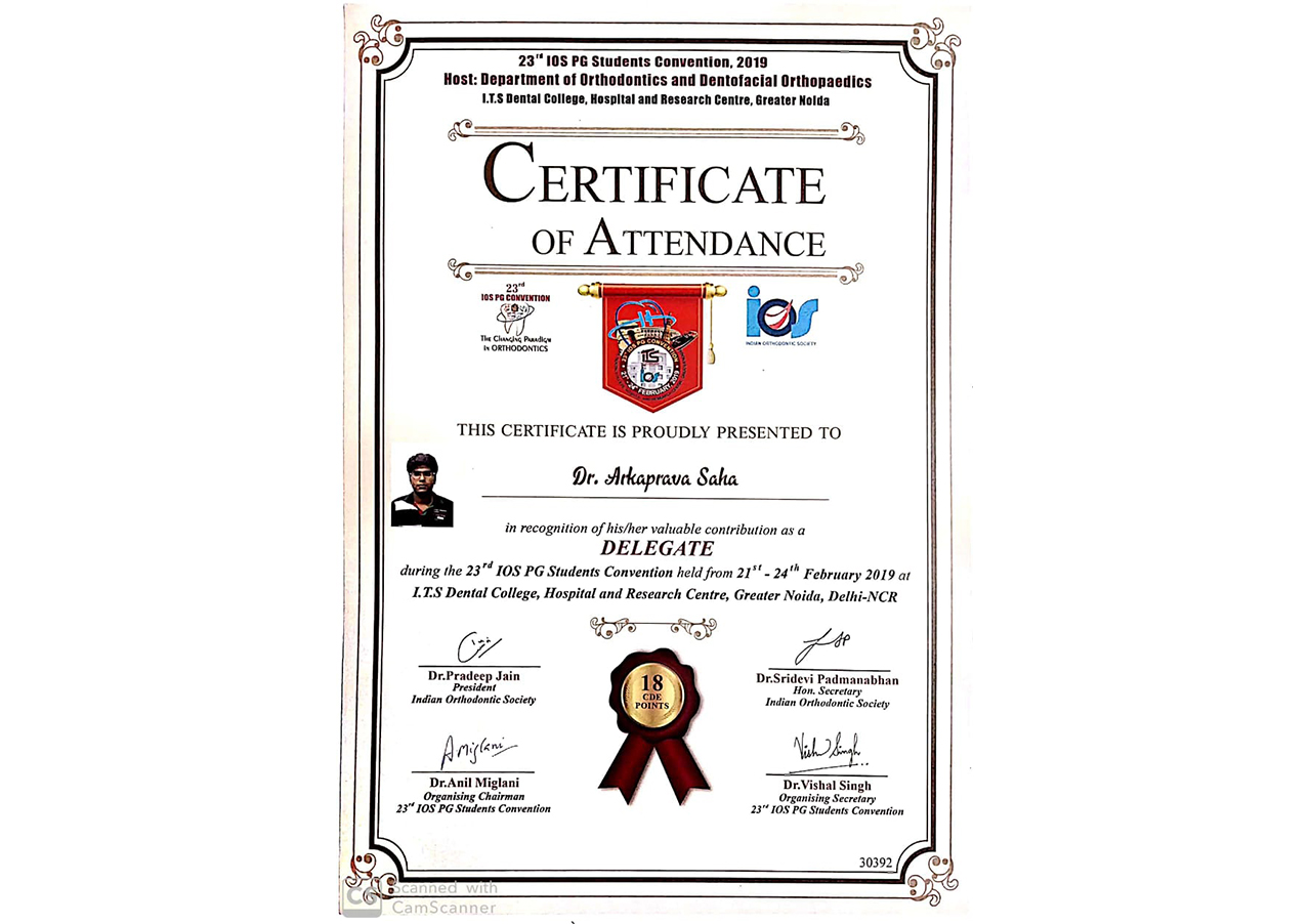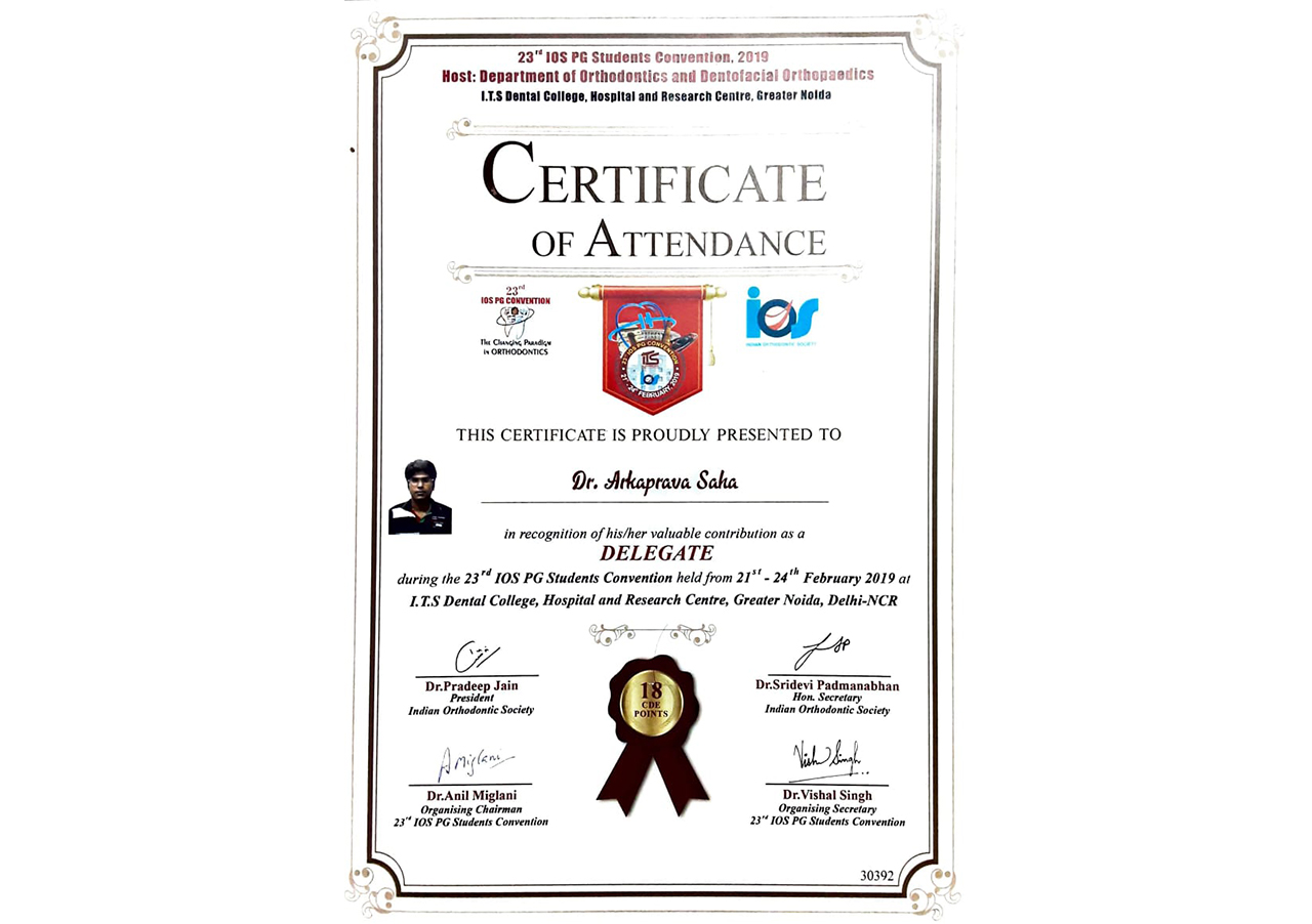 Presented Poster at the 23rd I.O.S Pg Convention on topic “CR-CO Discrepancy, Noida.