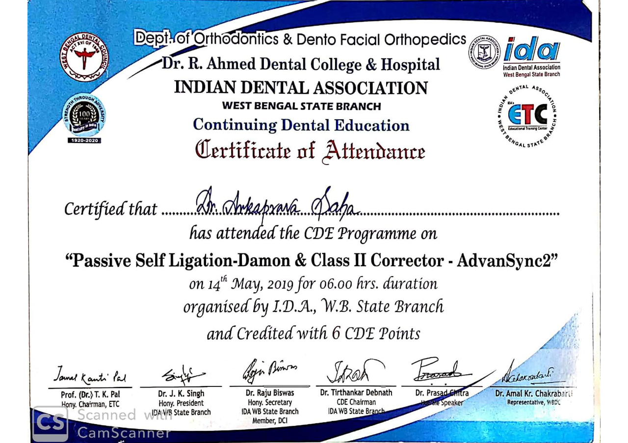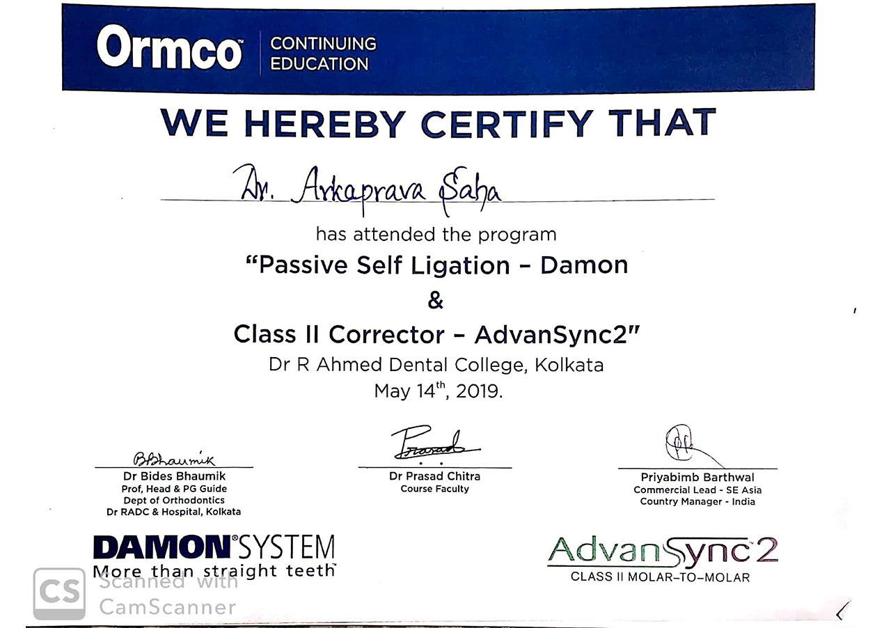 CDE Programme Titled, “Passive Self Ligation- Damon & Class II Corrector-AdvanSync2”, RADC,2019.