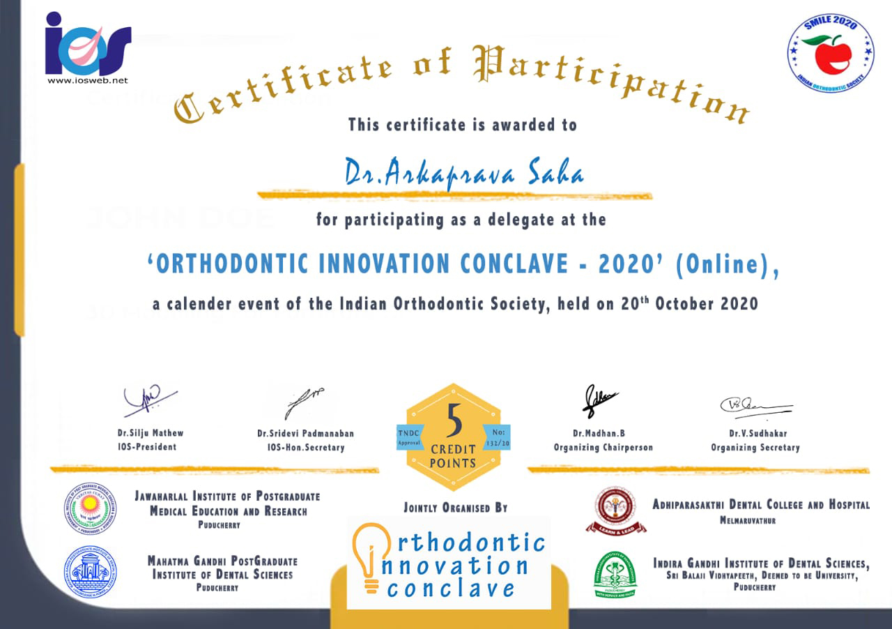 CDE Programme Titled, “Orthognathic And Orthodontic Surgical Symposium”, online .2021.