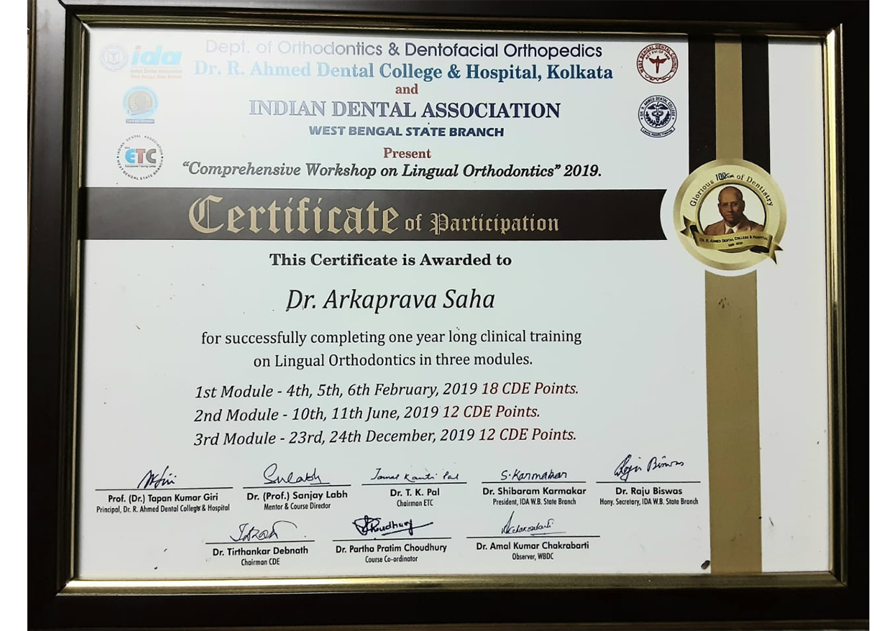 Comprehensive Workshop On Lingual Orthodontics,RADC,2019