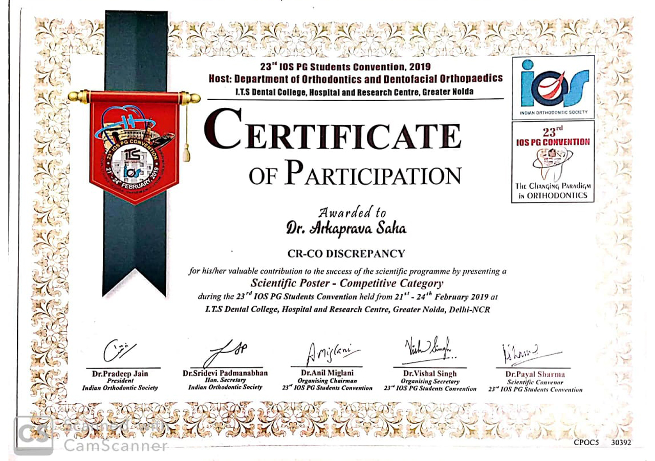Presented Poster at the 23rd I.O.S Pg Convention on topic “CR-CO Discrepancy, Noida.